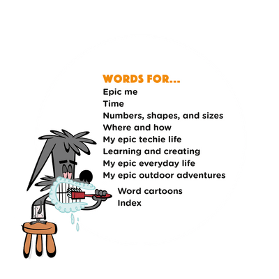 1000 hilariously illustrated words to help with social skills and emotional awareness, counting, shapes & measurements, hygiene, outdoor adventures, and arts & crafts. These are epic words that prepare you to succeed at home, school, and life in an epic way. There will be joy. There will be tears. There will be a dog brushing his teeth on a hoverboard. Get ready for My Epic Life Word Book.